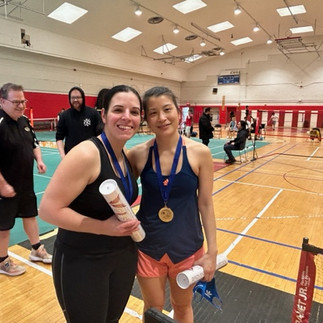 1st place - Wendy & Christine Ngyuen (Rally Niagara / Toronto) 21-14, 22-20 held their cool in a tough one against Yufei Ye & Alexsandra Moiseieva (Carnegie Mellon, Kyiv Badminton). Very good match....