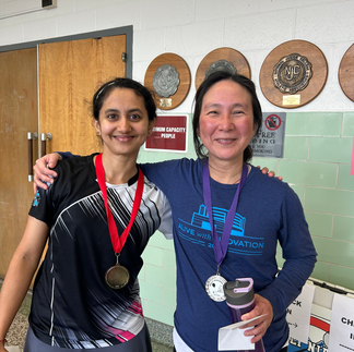 1st place - Sarika Gokhale (University of Rochester) became a defending 3 time champion in women's singles with a solid victory over a tough opponent in Emily Baskind (Capital District) who recently won two tournaments in Connecticut. The final score was 21-13, 21-6.